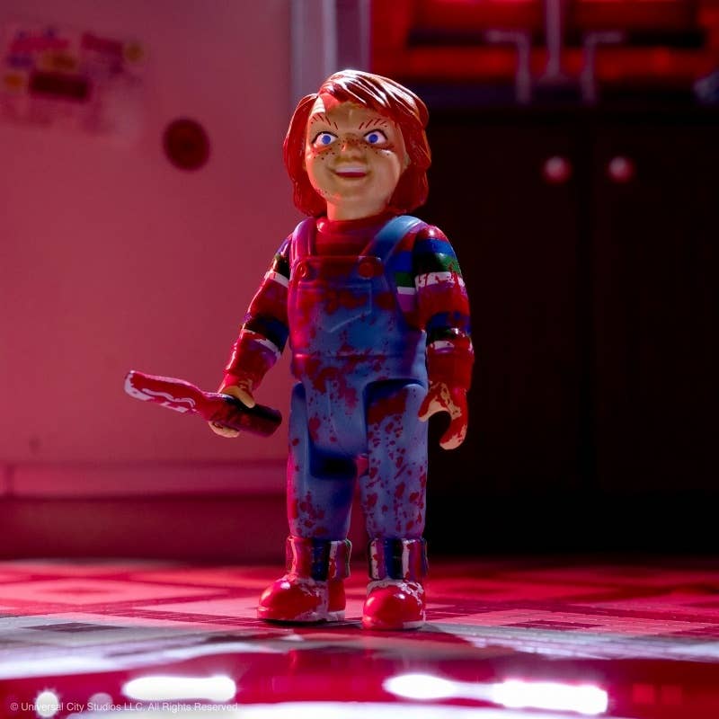 Since the "Child's Play" horror film franchise made its debut in 1988, a total of eight films have been made, including remakes, and the main character Chucky is now a horror-film icon! Chucky now joins the "ReAction" figure lineup from Super7 in this special blood-splattered version! Chucky comes with his bloody knife, and he's jointed at the shoulders, neck and hips like the awesome old action figures of days gone by. Order him for your own collection now!