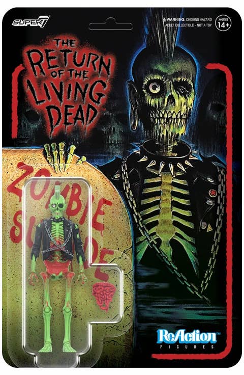 Suicide from 1985's "The Return of the Living Dead" is now part of the "ReAction" figure lineup from Super7! He's posable at neck, shoulders and hips like the awesome action figures of yesteryear; he comes with removable intestines. Order him for your own collection today!