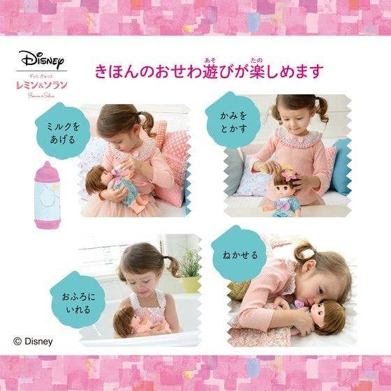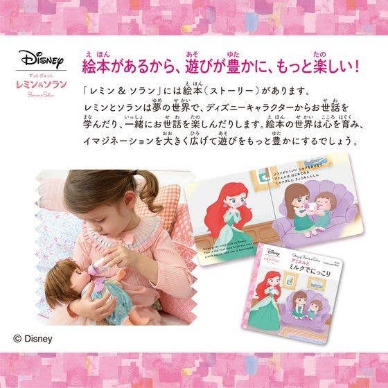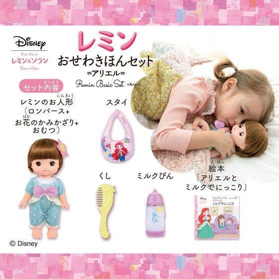 From Disney and Bandai's doll series "Remin and Solan" comes an adorable set of Remin dressed in an Ariel-like mermaid-themed outfit! She comes with a milk bottle that will appear to gradually empty when tipped upside-down!