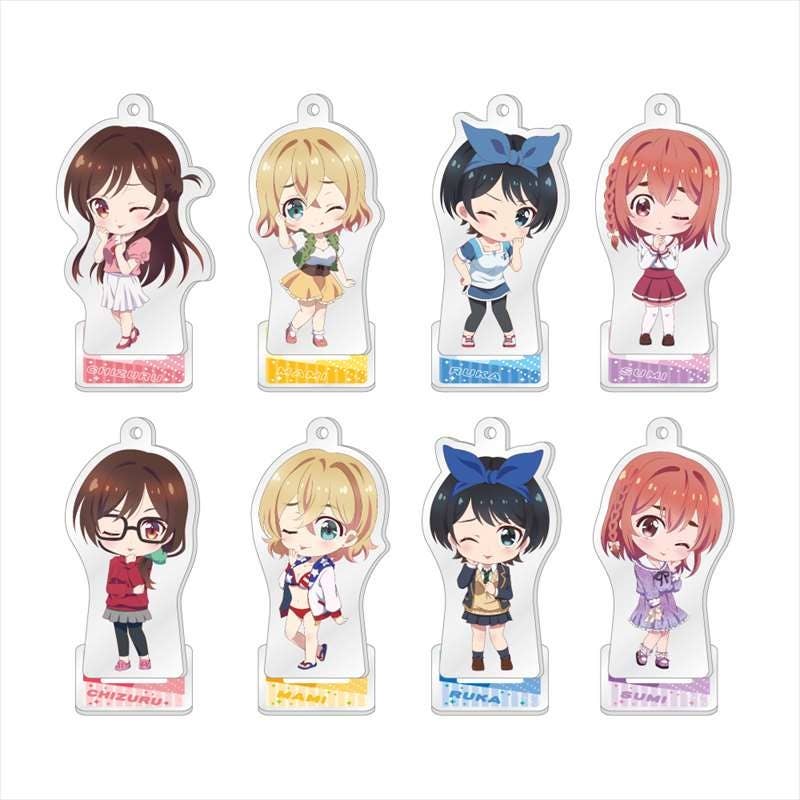 These trading acrylic keychains feature newly drawn chibi versions of the "Rent-A-Girlfriend" characters! There are two designs available of four different characters, for a total of eight; you'll receive one of each in the box. Order yours today!