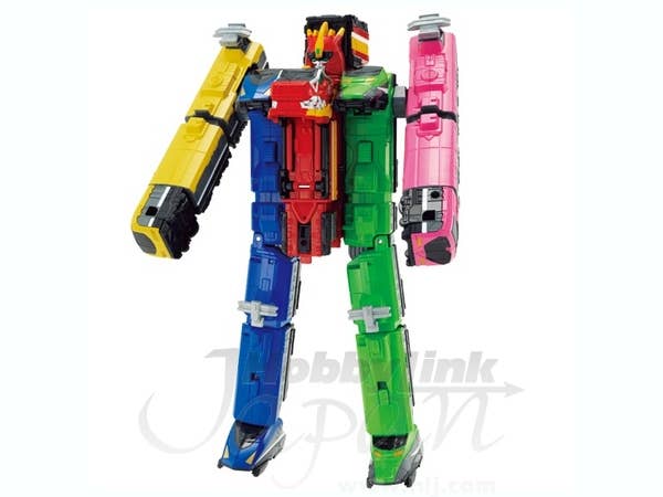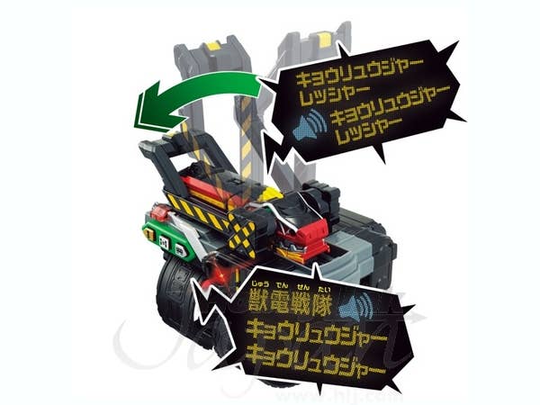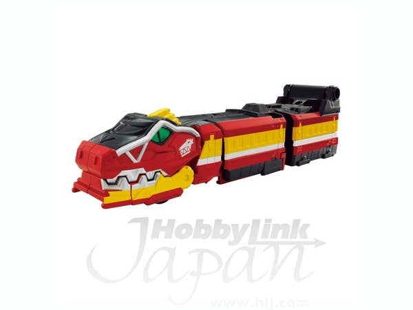 Please stand behind the line! As seen in the Heisei Rider Vs. Showa Rider movie, Gabutyra transforms into the Kyoryuger Ressha and can combine with the DX ToQ-Oh (sold separately)! Place into your Transformation Bracelet ToQ Changer (also sold separately) to unlock unique Kyoryuger sounds!