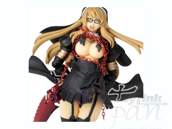 From "Queen's Blade Rebellion," here comes Sigui! This super-posable Revoltech figure showcases Sigui in her "second player" coloration, and features tons of accessories: three interchangeable faces, damaged versions of her outfit and underpants, removable glasses, her Mace of Holy Fire and God's Chained Blade, two interchangeable sleeves, three interchangeable hands and a display base. The "first player" version is also available, linked below--order both of 'em for double the"Queen's Blade" fun!