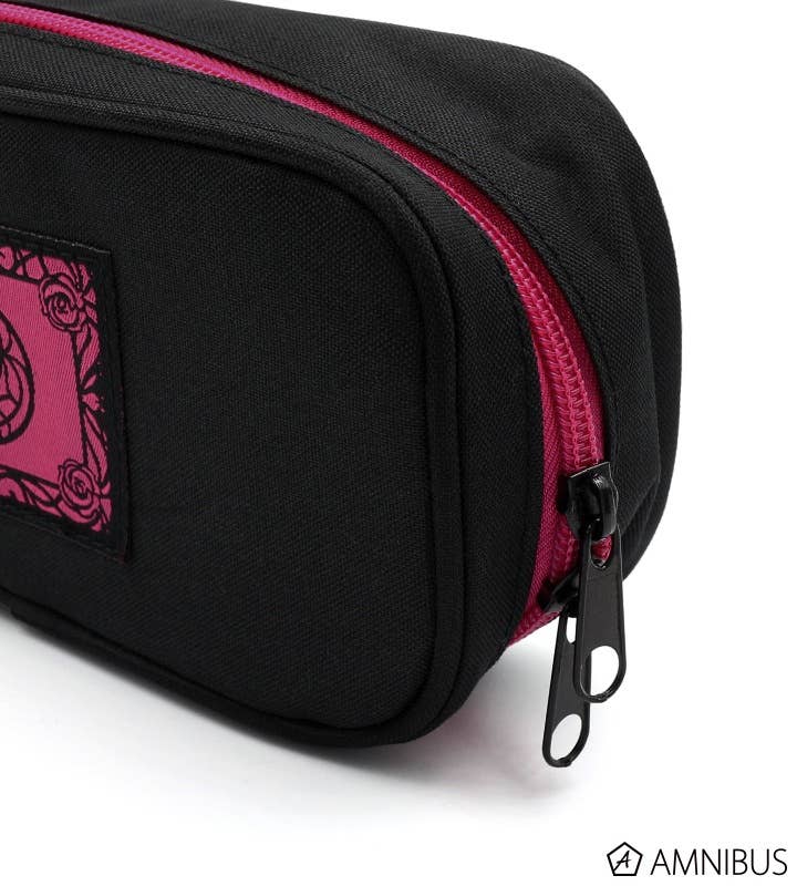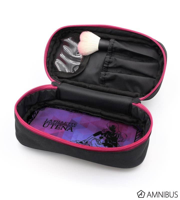 "Revolutionary Girl Utena" presents a brand new makeup pouch for you to enjoy! This makeup pouch features a simple yet striking design, with a pink rose crest up against a black background on the outside, with silhouettes of Utena and Anthy in purple located on the inside. This pouch comes with three brush holders, which you can use to house your Revolutionary Girl Utena cheek makeup brush! This is an excellent addition to any fan's collection. Order today!