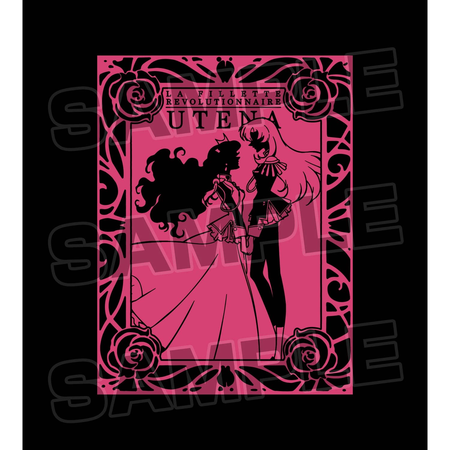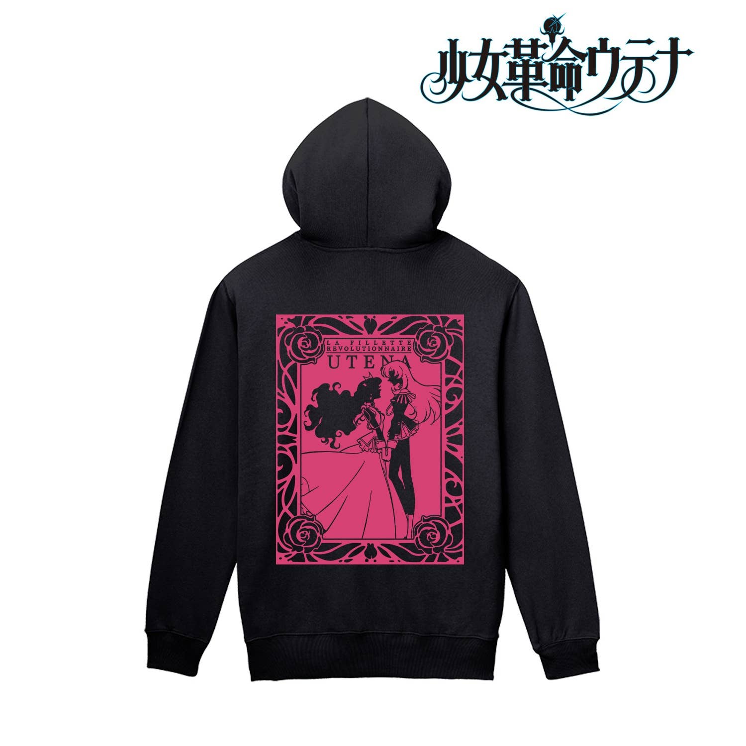 "Revolutionary Girl Utena" presents a brand new zip up parka for your enjoyment. This black parka features pink and black artwork of the characters Utena and Anthy together on the back, and makes for a great addition to any fan's wardrobe. Order today!