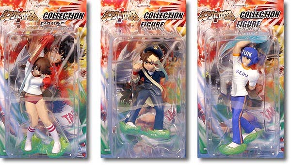 From the series "Ring ni Kakero" (made by the same people who did Saint Seiya), these three prepainted PVC figures feature the three main characters of the series (Ryuji, Kiku, and Jun) practising their punches! Jun and Kiku measure about 14 cm tall, and Ryuji about 10 cm (because he's bent over). Please note that figures such as this are mass produced and as a result some inconsistencies in finish and painting may occur; these are not considered manufacturer's defects. If you absolutely must have perfection, prepare to do some touch-up work on your own.