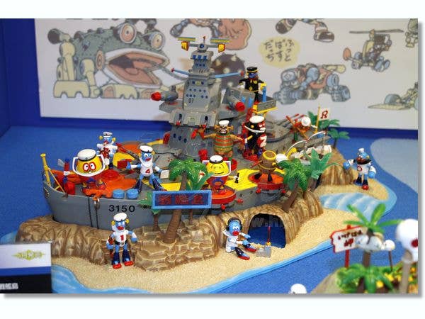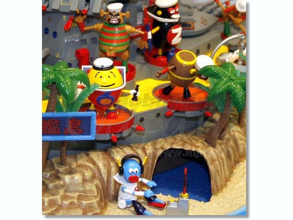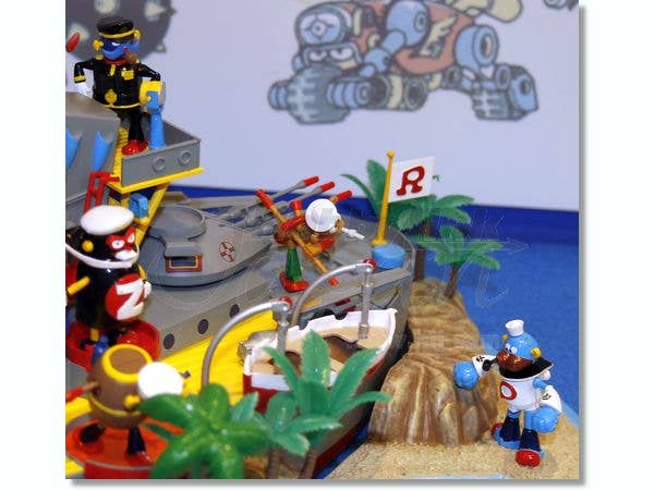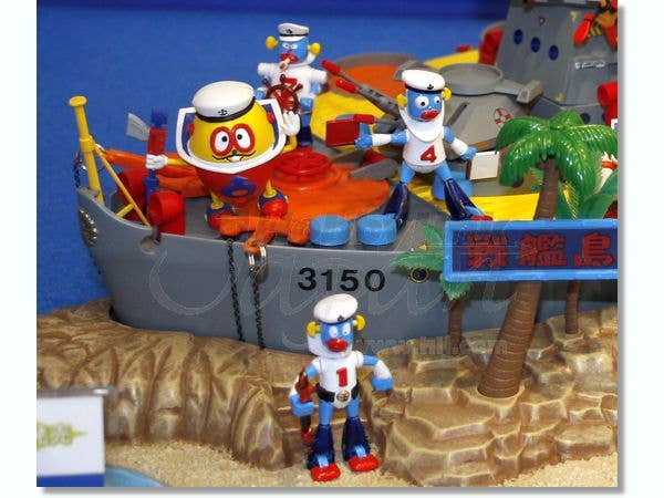 Here's a great big model kit of Battleship Island from "Robo Dachi"! Includes the island base with battleship, 12 Robo Dachi Navy figures, and plenty of action! The battleship can separate from the island, missiles can fire, hatches can open, and the skifs can be launched. Molded in a myriad of colors, with decals for markings. Will measure nearly 20 inches (50cm) long when completed!