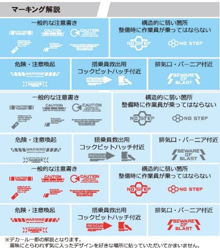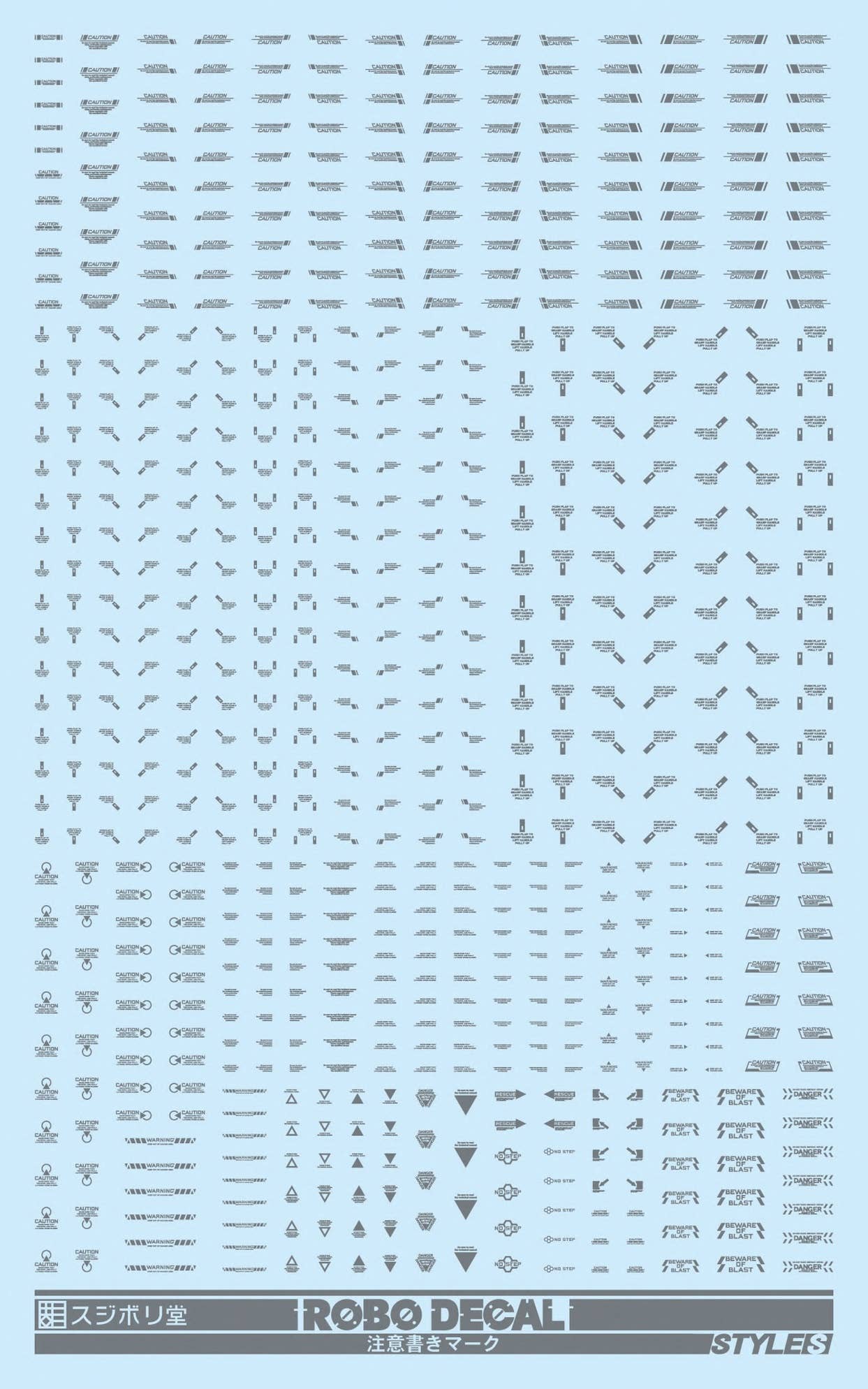 This is a set of decals with "Caution" markings, ideal for your sci-fi or mecha kits! In color gray. Order today!