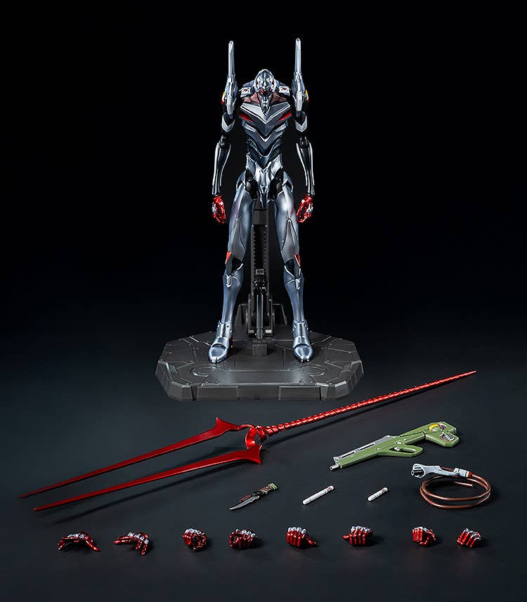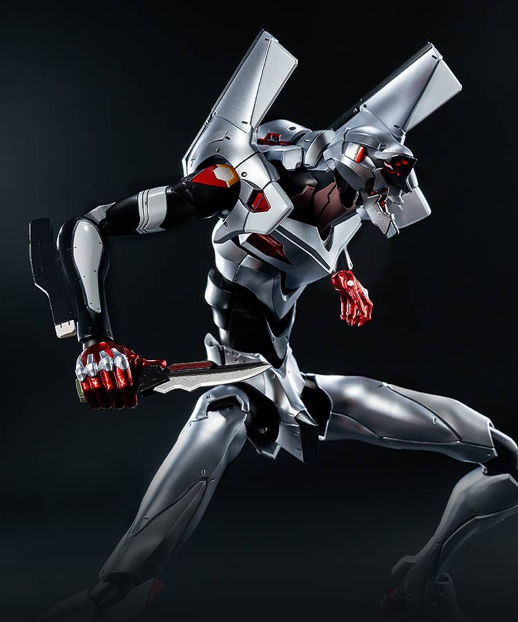 Evangelion Unit-04 from the anime film "Rebuild of Evangelion" is now part of the "Robo-Dou" action-figure lineup from Three Zero! This highly detailed figure of Evangelion Unit-04, a mysterious unit that never appeared in the main story of the film and was destroyed in an accident during testing, is based on official design materials! The fully posable figure stands approximately 25cm tall, including its shoulder parts, with approximately 48 points of articulation. The internal frame is made of die-cast metal, providing weight, strength, and a wide range of motion. Order this amazing Eva unit for your own collection today!