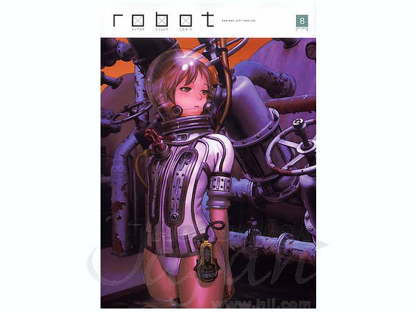 This eighth volume of Robot features colorful illustrations and manga stories by artists that include Range Murata, Kamui Fujiwara, Roboinu, Sabe, Neonvision, Yoshitoshi Abe, Yusuke Kozaki, Imperial Boy, Yamato Yamamoto, Kawayoo, Kengo Yonekura, Miggy, Shigeki Maeshima, Mami Itou, Inuburo, and Shin Nagasawa. Printed mostly in color with some black and white pages. Softcover with dust jacket.