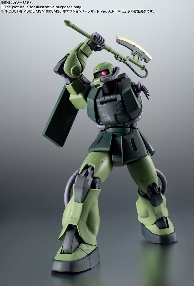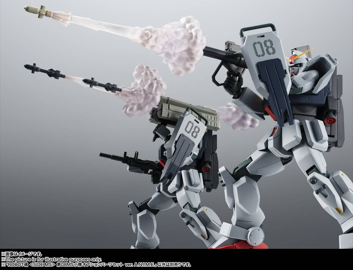 This set of additional equipment and effect parts for your Robot Damashii RX-79(G) Land Battle Gundam ver. A.N.I.M.E. can help you reproduce the realistic battlefield scenes from "Gundam: 08th MS Team"! Damage parts are also included for the Robot Damashii MS-06JC Zaku II JC Type Ver. Anime (sold separately)! The rocket launcher and missile launcher include effect parts to reproduce the action of the weapon performing suppression shooting; the rocket launcher mount joint allows you to mount the weapon on the back of the RX-79(G). Effect parts are also included for the famous scene of firing the 180mm cannon! Order yours today!