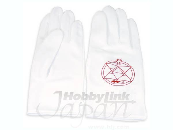These sharp white gloves bear the scarlet insignia worn by Roy Mustang, and are perfect for cosplayers! Size L; approximately 23cm in length.