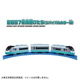 Modeled after the "E657 Series Hitachi" in its revival green color. Consists of three cars, each capable of being coupled and uncoupled. Features two-speed electric operation, with the option to switch to manual play when the switch is turned off. Includes a plastic train card. (Rails are not included)