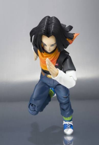 Android No. 17 joins Bandai's S.H. Figuarts team! He's armed with his gun and holster, has an interchangeable belt and bandana, three extra facial expressions, extra hair parts, a set of folded arms, and several pairs of interchangeable hands!