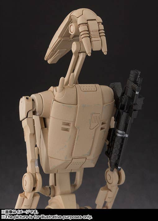 Roger roger! Bandai's "S.H.Figuarts" version of the Battle Droid from "Star Wars Episode I: The Phantom Menace" is back! It's fully posable, and can even get into the fully folded-up "stored" position. A blaster rifle is included, as are replacement antenna parts. Order yours today!