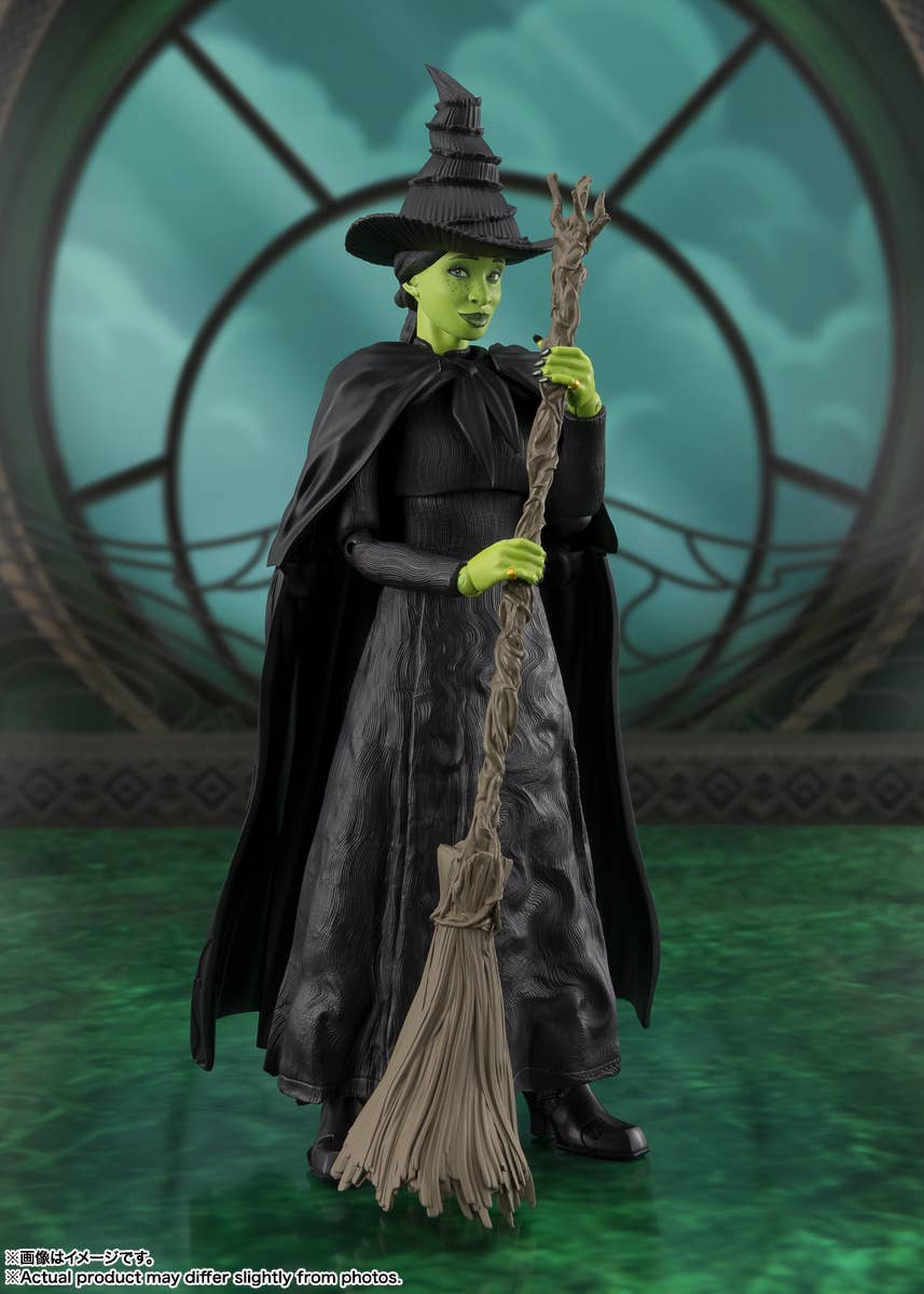 "Wicked" has become a worldwide phenomenon, and has become the highest-grossing Broadway musical film of all time! Now Bandai brings us their "S.H.Figuarts" figure of Elphaba, as portrayed by Cynthia Erivo in the film! Bandai perfectly recreates Elphaba in palm-sized form, complete with her iconic green skin, with a variety of optional parts, such as the hat given to her by Glinda and her cloak. Three interchangeable facial expressions, delicately crafted with Tamashii digital coloring, are included, and you can also recreate the pose of her riding off into the sky on her broom! The spellbook is also included in two versions -- closed and open. Order her for your own collection today!