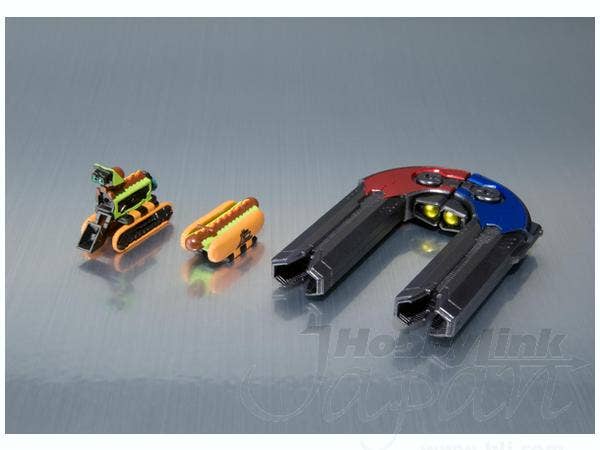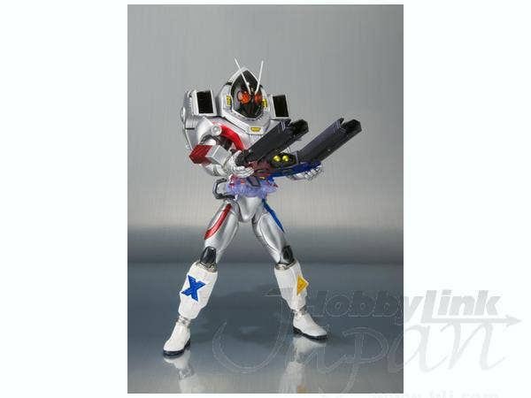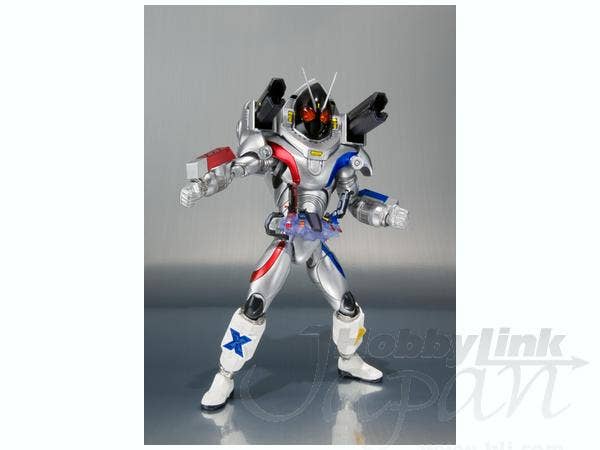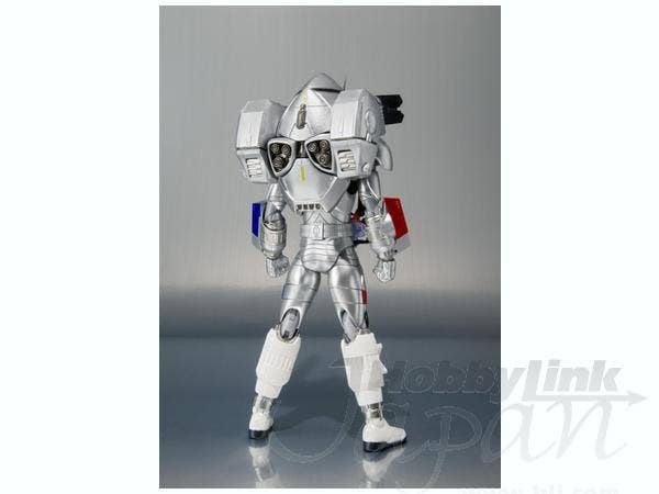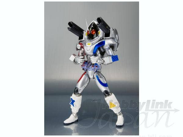 As usual, this offering from Bandai's S.H. Figurarts series is all you could possibly ask for in a compact, posable figure of your favorite hero. This time, it's Kamen Rider Fourze, in his "Magnet States." Of course there are plenty of option parts to give you dozens of different ways to portray the figure, including four extra sets of hands, three versions (together, apart, and as Astro Swtiches) of the N/S magphone, both detachable and levitating versions of the magnet gun on his shoulder, a display stand that can be used to portray the gun in floating mode, and even two cute little mini-versions of the Horuwankov foodroid (as a robot, and as a mild-mannered hot dog).