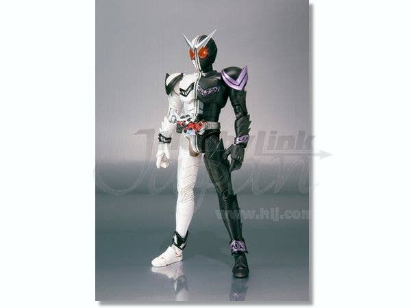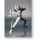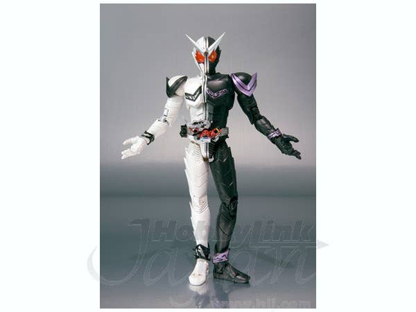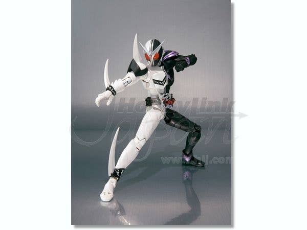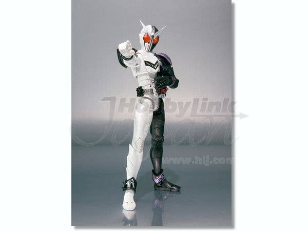 FangJoker, the startlingly black-and-white form of Kamen Rider W that joins Shotaro's consciousness with Philip's body, is now a fantastically posable S.H.Figuarts offering! This sharply detailed figure stands about 14cm tall, and has die-cast ankles as well as plenty of articulated joints to help him strike dynamic poses. Shoulder Saber, Arm Saber, and Maximum Saber parts are included, as are optional hands. Act fast! Please note that the photos shown are of a prototype; the production version may vary. Also, figures such as this are mass produced and as a result some inconsistencies in finish and painting may occur; these are not considered manufacturer's defects. If you absolutely must have perfection, prepare to do some touch-up work on your own.
