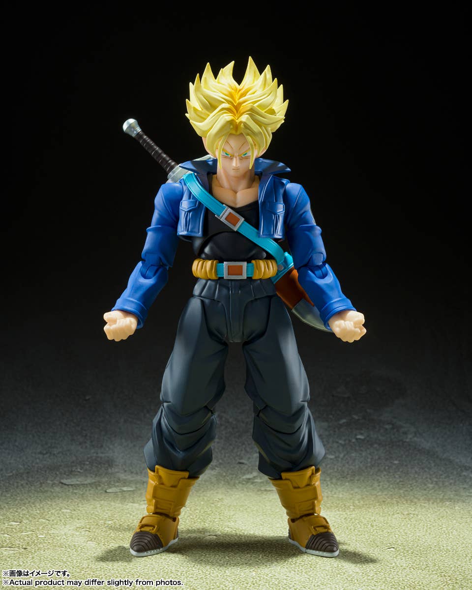 Super Saiyan Trunks from "Dragon Ball Z" returns to Bandai's "S.H.Figuarts" action-figure series! He features the same shoulder joint structure adopted for the S.H.Figuarts Super Saiyan 4 Son Goku, and his jacket is made of soft materials so it won't get in the way of epic sword poses. Three interchangeable faces are included, as are interchangeable hands, a "normal Trunks" head, and a sword with a scabbard. Order this legendary hero for your own collection today!