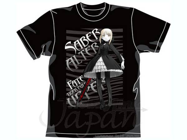 The somewhat spooky Saber Alter from "Fate/Tiger Colosseum Upper" stands tall on the front of this stunning black T-shirt! Made of 100-percent cotton for comfort and durability. Length (shoulder to hem): 77cm. Width (measured flat, under the arms, one side only): 58cm.