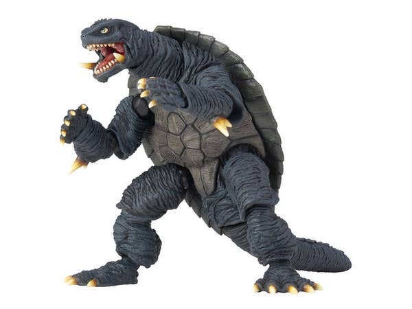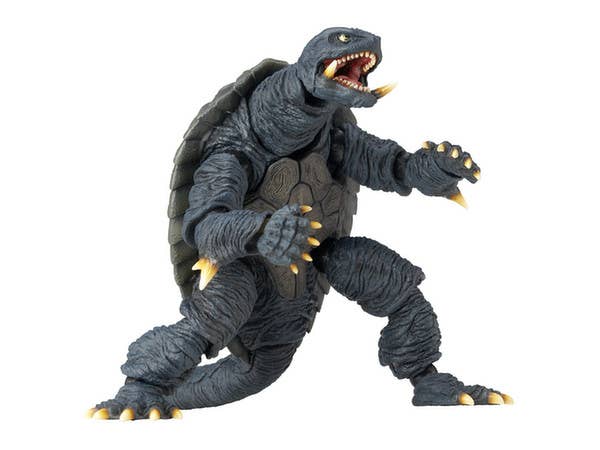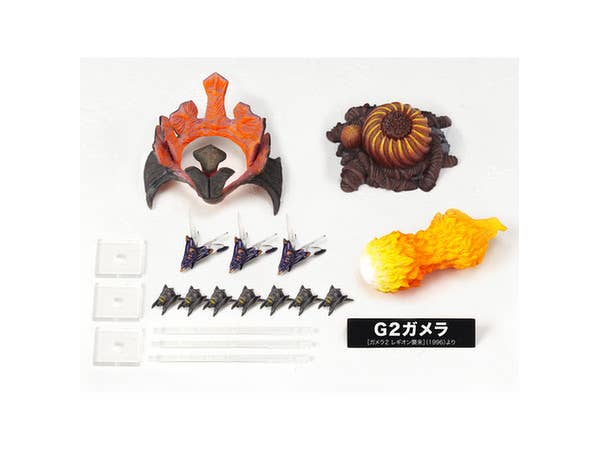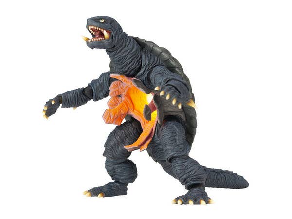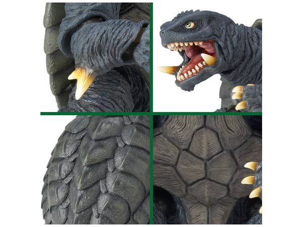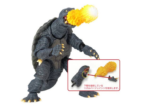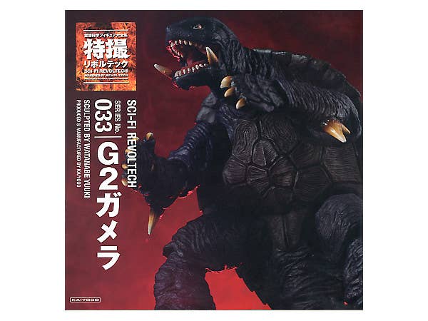 Now we're talkin'! Gamera from Gamera 2: Advent of Legion gets the Revoltech treatment! Fully articulated and stunningly detailed, this figure will go great with the Revoltech Legion, sold separately. This set includes Gamera, a fireball effect part, a "Gaia Blast" chest part, seven Legion Soldiers, three flying Legion Soldiers, a mini Legion Flower, and a nameplate.  Get your Gamera on now
