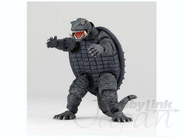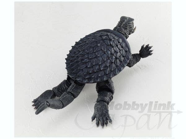 Showa Gamera in the house! Depicting our favorite flying turtle as he appeared in 1967's Gamera vs Gyaos (don't miss Gyaos, linked below), this Revoltech figure from Kaiyodo features all the amazing posability we've come to expect from the line. Includes parts to show him in spinning flight, plus a bit of flame to spew. He's really neat!