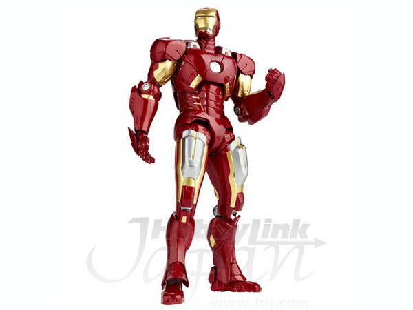 Next up from Revoltech: Iron Man Mark VII! Stunning detail and posability (23 points of articulation!) is the name of the game, with extra hands and repulsar effects parts. Stands 15.5cm tall.