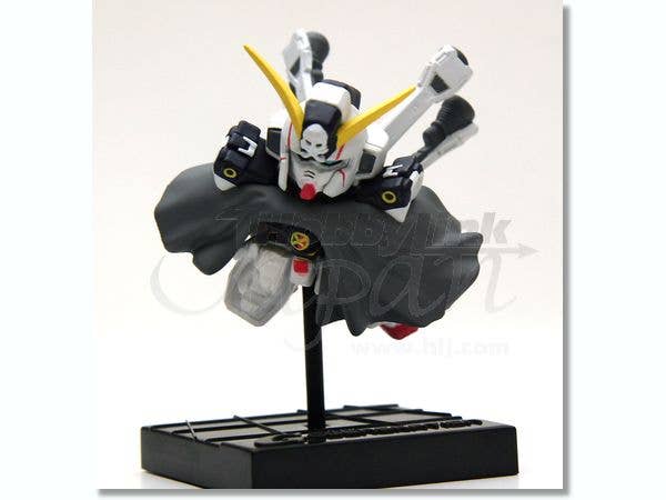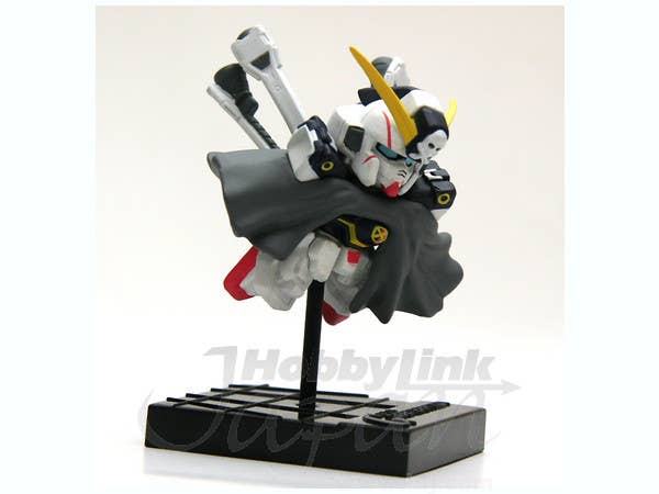 This beautifully detailed game-prize figure captures the super-deformed Crossbone Gundam X-1 charging into the battlefield in space. Based off its design in the "SD Gundam G Generation Wars" PS2 video game, it comes in prepainted parts that can be easily assembled, and a base with stand is also provided for setting it up on display. The figure measures about 4cm tall without the base and stand.