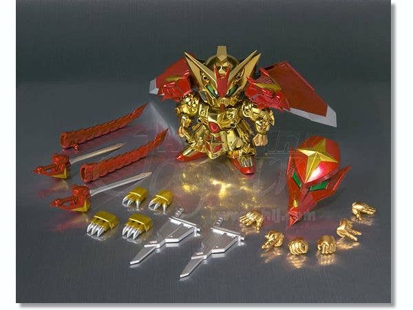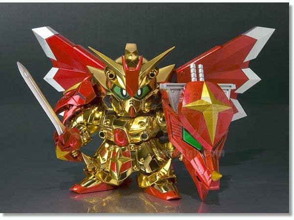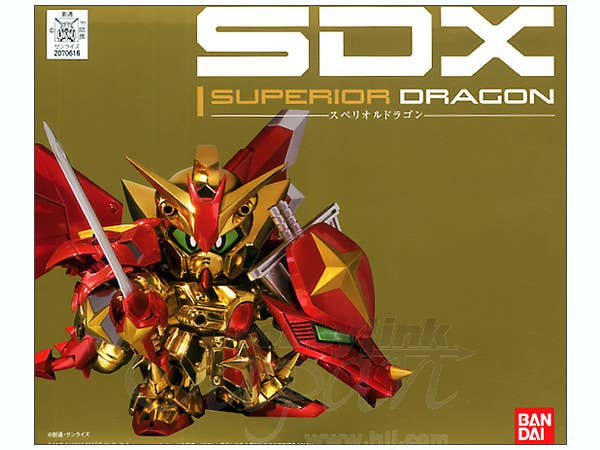 A favorite character among fans of the "SD Gundam Gaiden" series, Superior Dragon now joins Bandai's coveted SDX series! This Superior Dragon action toy features some die-cast metal gold mekki armor parts and fully poseable joints for an impressive range of dynamic posing possibilities despite its 10cm size. He also comes packed with interchangeable armor parts for switching between normal mode and dragon mode. His signature sword and optional eyes and hands are also provided. (Initial release only also includes an extra sword. If your item does not include the sword, then it is not the initial release.)