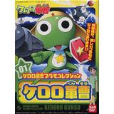 Incredibly cute injection plastic figure of Sergeant Keroro (Keroro Gunso). No paint or glue are required; like a Gundam kit all the parts are molded in colour and snap together. Stickers are included for detail (like his eyes). When completed, he's got some limited mobility at the main joints.