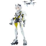 Max Factory, Sentinel and AF_KURO combine forces to bring us the newest entry in the "Shojo-Hatsudoki MOtored Cyborg Runner" action-figure series -- SSX_155ar Kinetic Ash! She hails from AF_KURO's "Shojo-Hatsudoki" series of illustrations featuring street-racing cyborgs equipped with internal combustion engines; she specializes in photographing runners moving through the streets of Tokyo. Articulated winglets have been added to improve her cornering speed and stability, and she's equipped with a stabilizer camera, gun microphone, and auxiliary photography drone. Her flowing hair has been carefully sculpted to create a natural silhouette, and her pale color scheme and white ash-like appearance add to the atmosphere of the photoshoot! This model also features die-cast parts in some areas, such as the legs, making it easy to display her in action poses! A base for display is included. Order her for your own collection today!