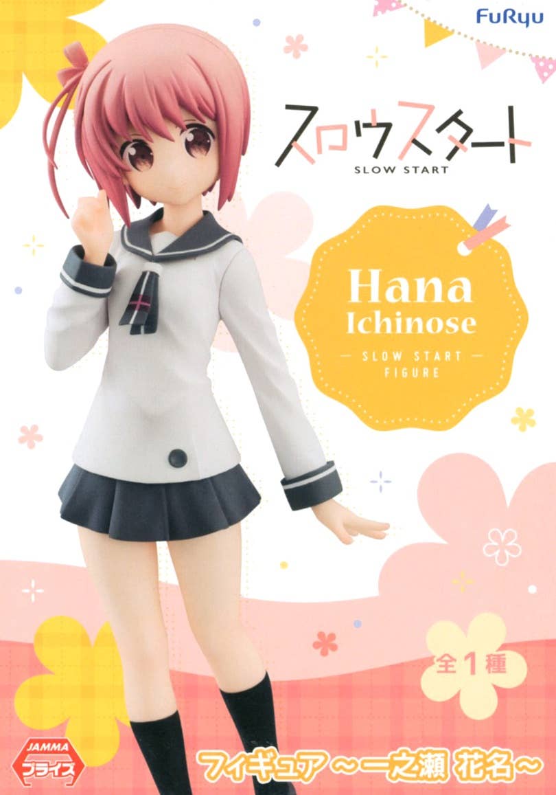 From "Slow Start" comes a figure of the heroine who started high school a year late and is doing her best to catch up with her classmates, Hana Ichinose! Hana's sweet smile is perfectly captured in this figure, which brings out the warmth of the show as well as Hana's relief at making friends in unfamiliar territory. She measures about 17cm tall. Welcome Hana into your collection today!