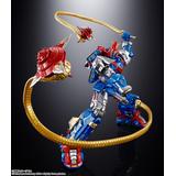 "Voltes V Legacy" is a live-action TV series made in the Philippines, based on the classic anime "Super Electromagnetic Machine Voltes V," and now the Voltes V from that highly popular show is joining Bandai's "Soul of Chogokin" action-figure lineup, with its five transforming and combining Volt Machines! This latest Voltes V was created using CG, and is carefully recreated in high detail, while the transformation and combining mechanisms are fully realized with "Soul of Chogokin" quality! The canopies of the Voltes Cruiser and Voltes Lander are reversible, allowing you to recreate the presence or absence of shutters without having to replace them. The Voltes Bomber, which unfolds in a large scale in the CG footage, also features a unique transformation gimmick, allowing it to combine with the Voltes Cruiser while maintaining its strength. The fists that unfold when using the Voltes Bomber can hold weapons, too! In addition to transforming and combining, the figure is also posable in its combined state for a variety of action poses. The Sky Sword is sculpted in an impressive size! Left and right interchangeable hands are included to display Voltes V holding the sword downward, too. The movable shoulder mechanism allows the Sky Sword to be held high as well! The Electromagnetic String is made of bendable material, allowing for flexible attacks in combination with the main body! The tips of the Electromagnetic String can be swapped to unleash the Choudenji Top! The Voltes Bazooka is also included, and it can be attached to either arm; open hand parts for supporting the gun barrel are also included for each side. The hand parts used for transforming and combining are large enough to store in the Voltes Bomber, but can also hold weapons! A special base is included to display all five Voltes Machines when separated. They can transform into Heavy Tank Mode, too, using special parts! Order this spectacular robot for your own collection today!