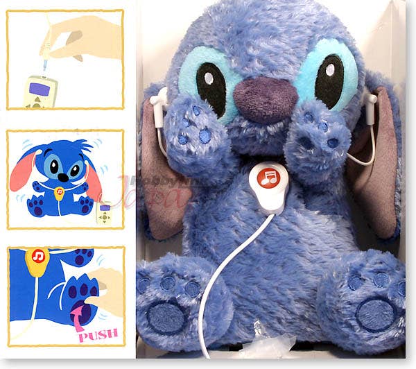 This cute Sound Pet Stitch will dance to the rhythm of any music that it "hears"! Just connect its earphone jack into any kind of portable music player you may have, and watch it dance to the music. It can also act as a speaker for your portable music player if you choose, and dances while the music is being played. You can set your own time rhythm by pressing its left foot, too! 4 AA batteries are required (not included) to operate this item.