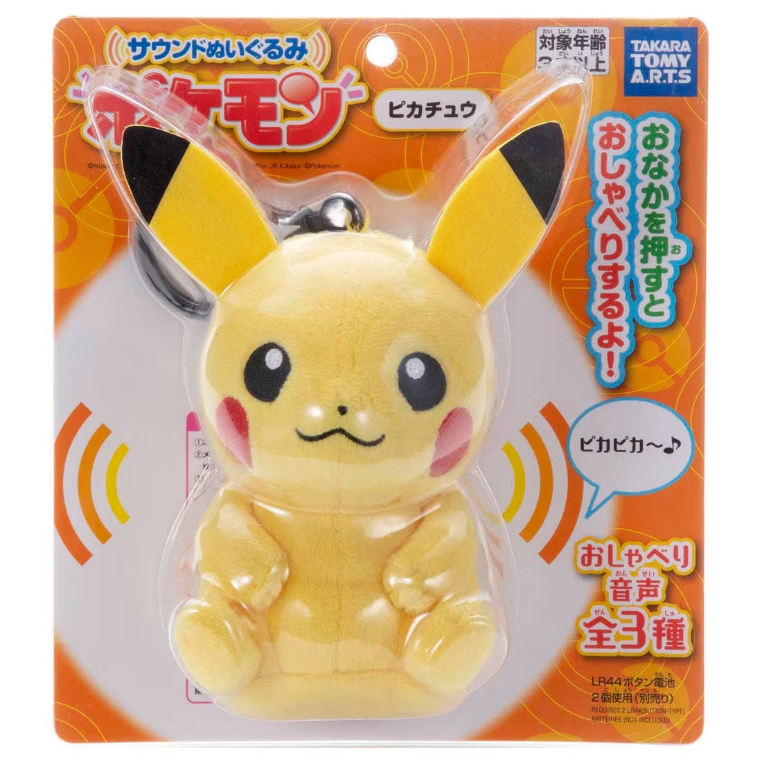 Press the stomach of this adorable stuffed plush Pikachu from Takara Tomy A.R.T.S. and he'll talk to you! There are three different things he can say to you, and he also comes with a plastic hook so you can take him with you everywhere! Order yours today!