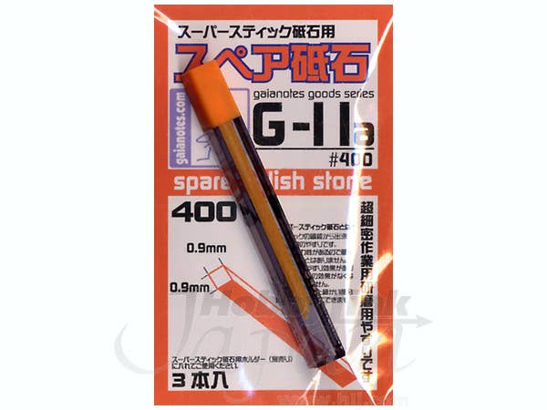 A set of three 9mm x 9xx square #400 "grit" sharpening stones, each one 5cm long.