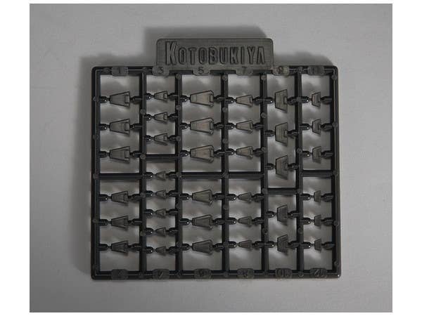 Set contains several sizes and shapes of square molds. Parts are molded in dark grey plastic.