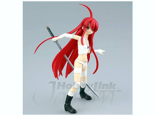 Yujin's SRDXD (Super Realfigure DX Doll) series features nicely detailed action figures of anime and game characters, with ratcheted ball joints that provide a wide range of posing possibilities! With distinctive bright red hair and a bandaged body, 14cm Flame Haze Shana features an impressive 26 points of articulation-- seven sections of her hair are even poseable! Shana comes armed with her Nietono Shana sword, and of course the set includes her favorite melon bread to eat after a hard day's battle! An optional flat left hand is included along with a red display base with figure stand to assist with dynamic poses. Please note that figures such as this are mass produced and as a result some inconsistencies in finish and painting may occur; these are not considered manufacturer's defects. If you absolutely must have perfection, prepare to do some touch-up work on your own.