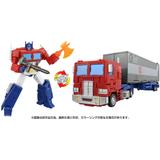 To commemorate the 40th anniversary of "Transformers," Autobot commander Optimus Prime appears in Takara Tomy's "Studio Series" with a completely new design! His appearance is perfectly reproduced from 1986's "Transformers: The Movie," and he transforms from his robot mode to his trailer-truck vehicle mode. The container can be connected to the rear of the trailer truck in vehicle mode and towed; the container can also be unfolded and transformed into base mode, and can be played with in robot mode or with the included six-wheeled roller. Weapons include Optimus Prime's energy axe, laser rifle, and effect parts. Each included part can be stored in the container, too! Order this beloved character for your own collection today!