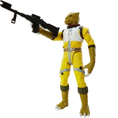 One of the most feared bounty hunters of the galaxy, Bossk used his natural Trandoshan hunting instincts to capture his prey. During the Clone Wars, the red-eyed reptilian partnered with a young Boba Fett. Bossk didn't care much for vendettas or politics. He was in it to get paid. After a brief stint in a Republic prison, Bossk continued his partnership with Fett, becoming a bodyguard to the teen bounty hunter. Decades later, Bossk answered Darth Vader's call to capture the Millennium Falcon after the Battle of Hoth, an assignment that put him in direct competition with Boba.