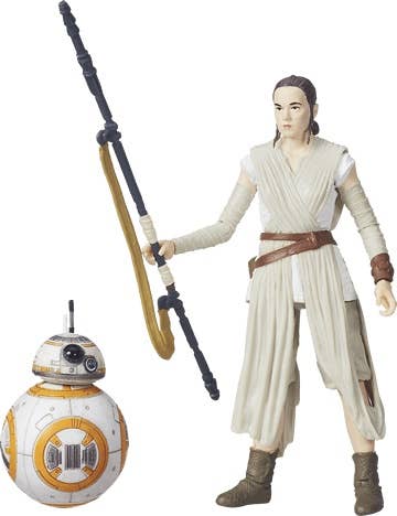 A resilient survivor and scavenger, Rey has been toughened by a lifetime of dealing with the cutthroats of the harsh desert world of Jakku. Joining Rey in the two-figure pack is BB-8, the spherical, loyal Astromech Droid of Resistance pilot Poe Dameron.