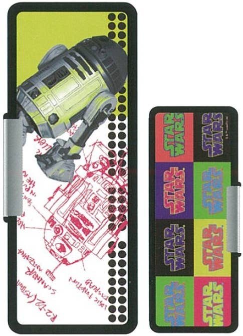 This sturdy pencil case with an awesome "Star Wars" graphic of everyone's favorite astromech droid, R2-D2, is 7.2cm by 17.5cm by 2.5cm, and closes securely with a magnet to keep its contents in place!