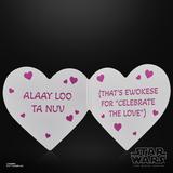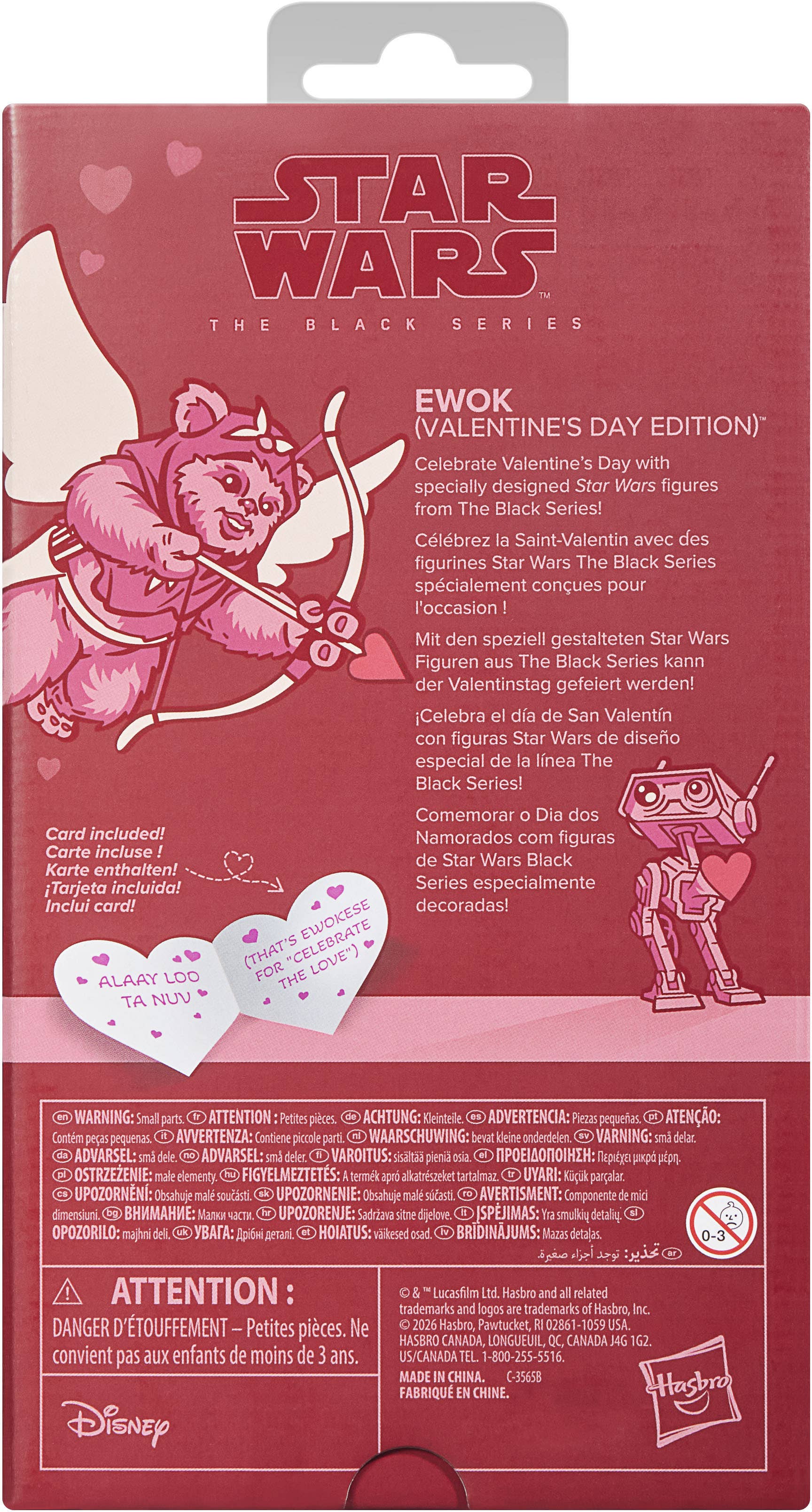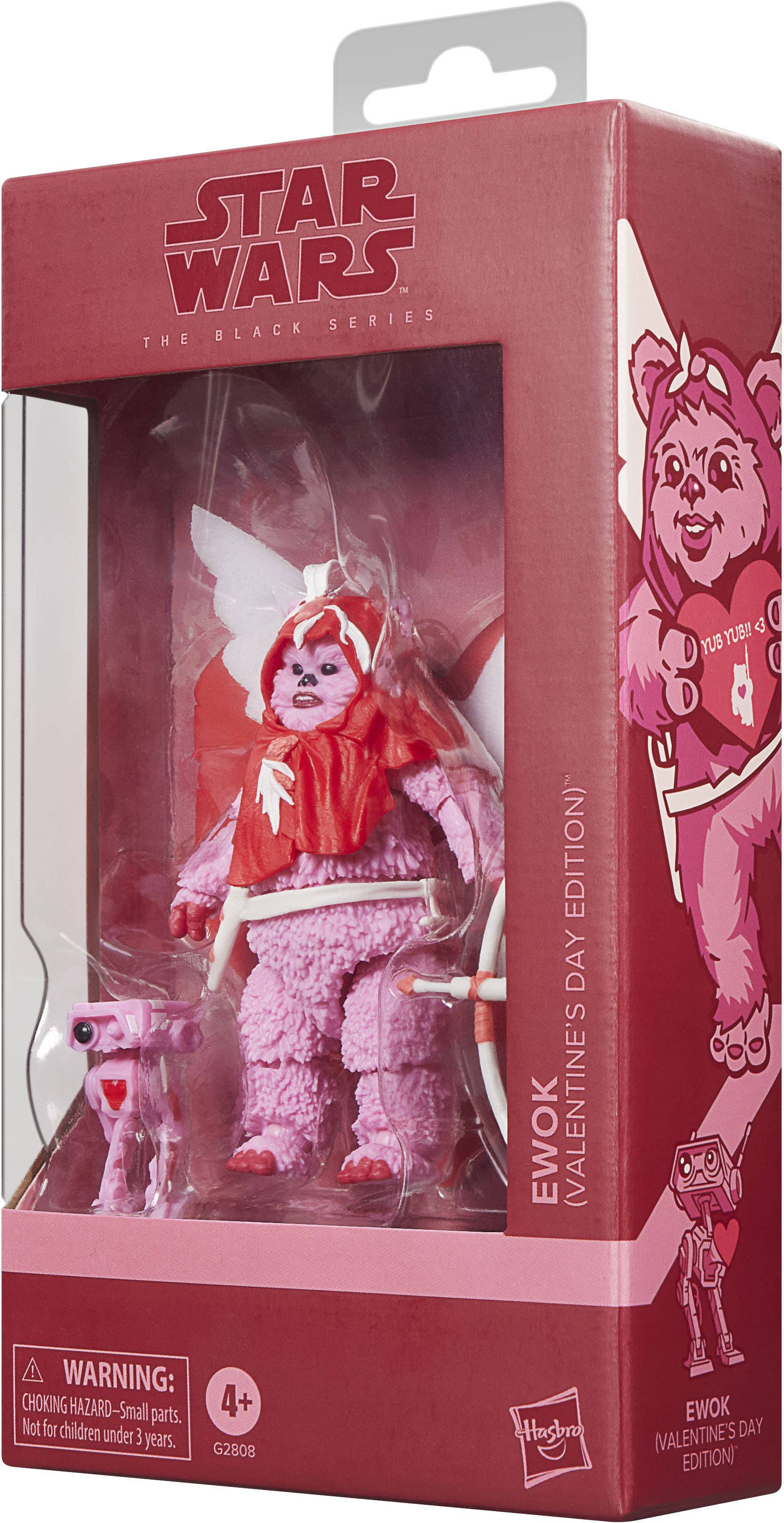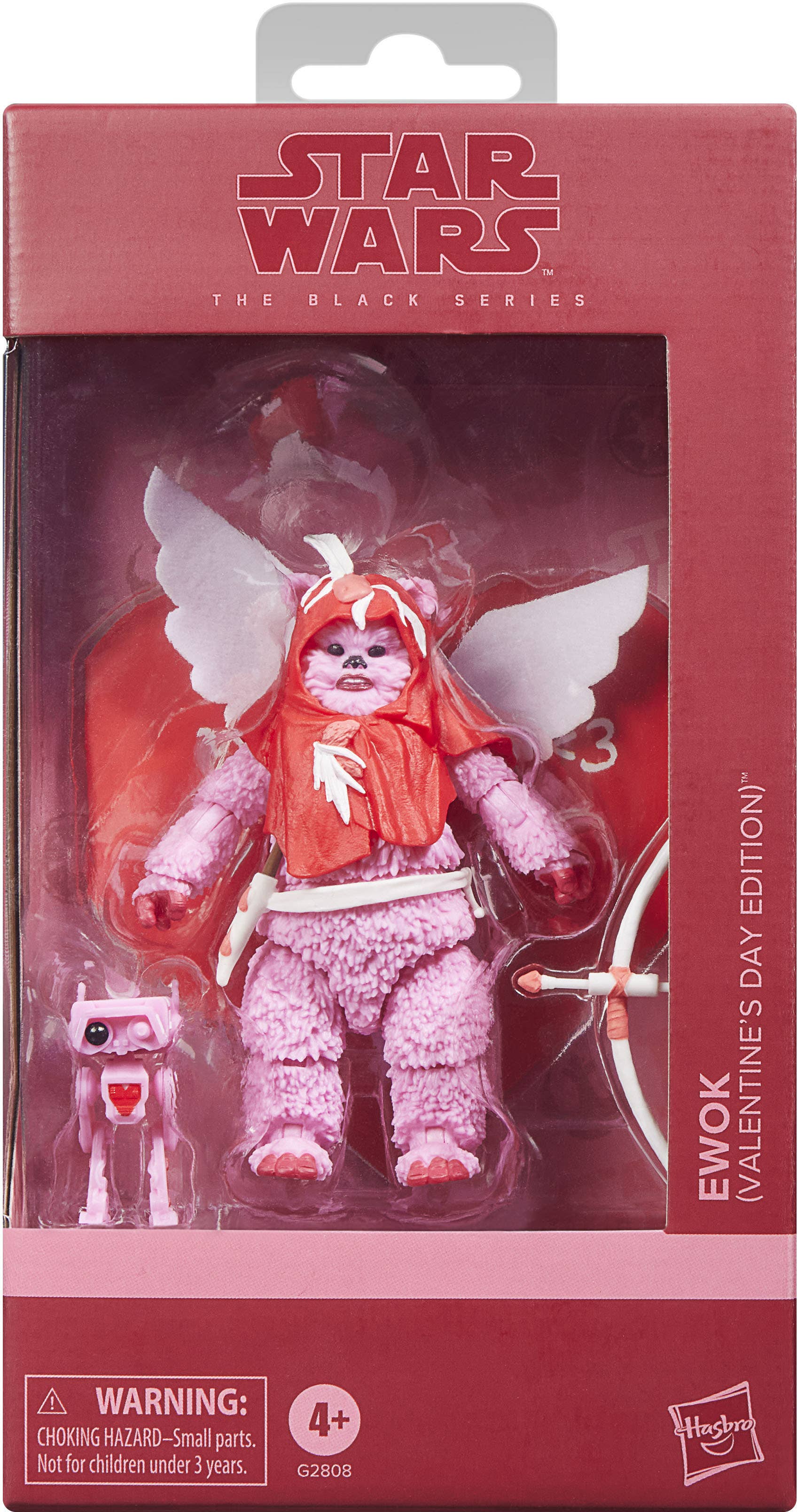 Yub yub! Celebrate Valentine's Day with this specially designed "Star Wars" action figure from Hasbro's "Black Series" of collectibles! This Cupid-style Ewok with fabric wings, a red hood, and pink accents makes the perfect gift for your favorite "Star Wars" fan (or even for yourself!)! This highly posable action figure comes with a crossbow and arrows, a heart-shaped greeting card, and a pink BD droid. Order him for your own collection today!
