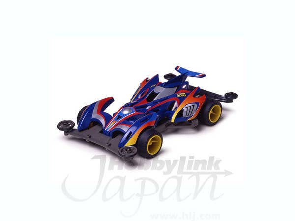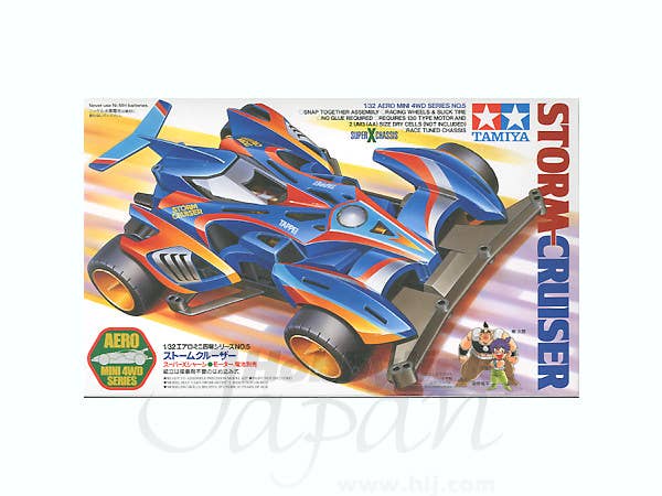 Super little mini 4WD car with a bright blue body and rubber tires; stickers are included for detail. Snap-fit assembly -- no glue required. 130-type motor, 2 AA batteries, and required tools (screwdriver, side cutters for plastic, and a modelling knife) are not included. Adult supervision recommended for building. Mini 4WD are made for racing specifically on Tamiya racing circuits.