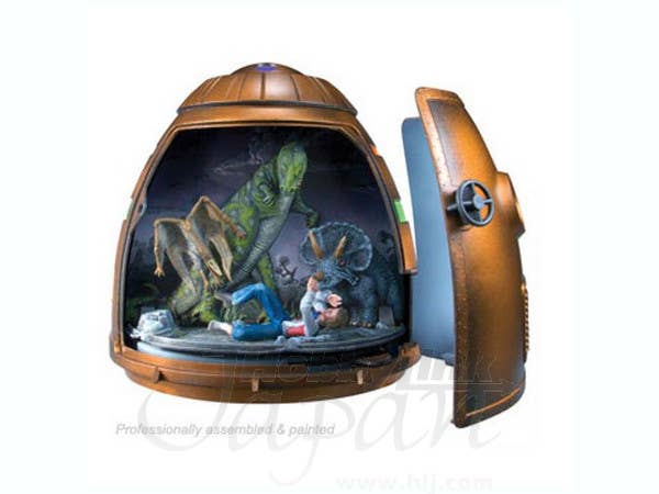"Your friends will flip when they see the Strange Change" pretty much sums it up. Th Strange Change Time Machine kit returns after being out of production fo 40 years. Using an ingenius rubber band powered mechanism, the intrepid time traveler teleports himself from the victorian area back to prehistoric times. The kit features tons of detail inside and out.