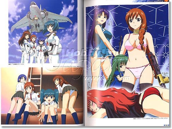 This Stratos Four visual book features colorful illustrations of characters from the anime series, character profiles of every character that appeared in the show with each profile page including screen captures of the characters, story digest, world guide, info and pictures of all air and space craft seen in the show, interviews with the cast and staff, and sketches of the characters and backgrounds.