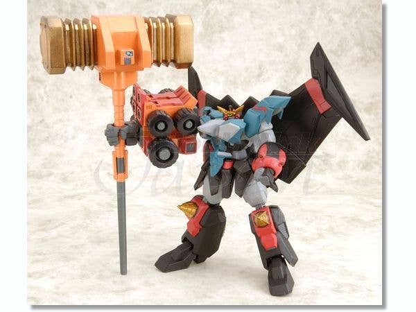 CM's Corporation's Sunrise Mecha Action series of ultra-poseable action figures now spotlights super-tough Mechanoid GaoFighGar from the "GaoGaiGar FINAL" OVA, along with its massive Zonder-disintegrating tool, the Goldion Hammer! Standing 15cm tall, non-transformable GaoFighGar is well-articulated for a world of posing possibilities, and the Goldion Hammer can be attached for Zonder-busting play and display! Optional hands are provided to recreate its Broken Phantom, Protect Wall, and Hell & Heaven abilities. Also packed in this fantastic box set are Dividing Driver and Gatling Driver tools (the Gatling Driver can be used with Star GaoGaiGar (sold separately), too)! An excellent set that fans will surely approve! Please note that the photos shown are of a prototype; the production version may vary. Also, figures such as this are mass produced and as a result some inconsistencies in finish and painting may occur; these are not considered manufacturer's defects. If you absolutely must have perfection, prepare to do some touch-up work on your own.