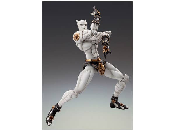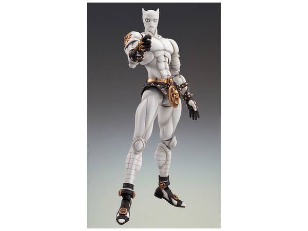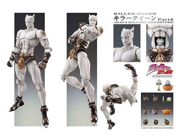 Yoshikage Kira's stand is here, straight out of "JoJo's Bizarre Adventure" part 4, "Diamond is Unbreakable"! At about 16 cm tall, Killer Queen can take up a variety of poses from the manga with the help of his figure stand -- and his stomach even opens up to fit the included Stray Cat. Killer Queen also includes several interchangeable hands and stem and flower pot accessories for Stray Cat. This Super Action Statue was originally released in 2010 and is now back in a re-release.