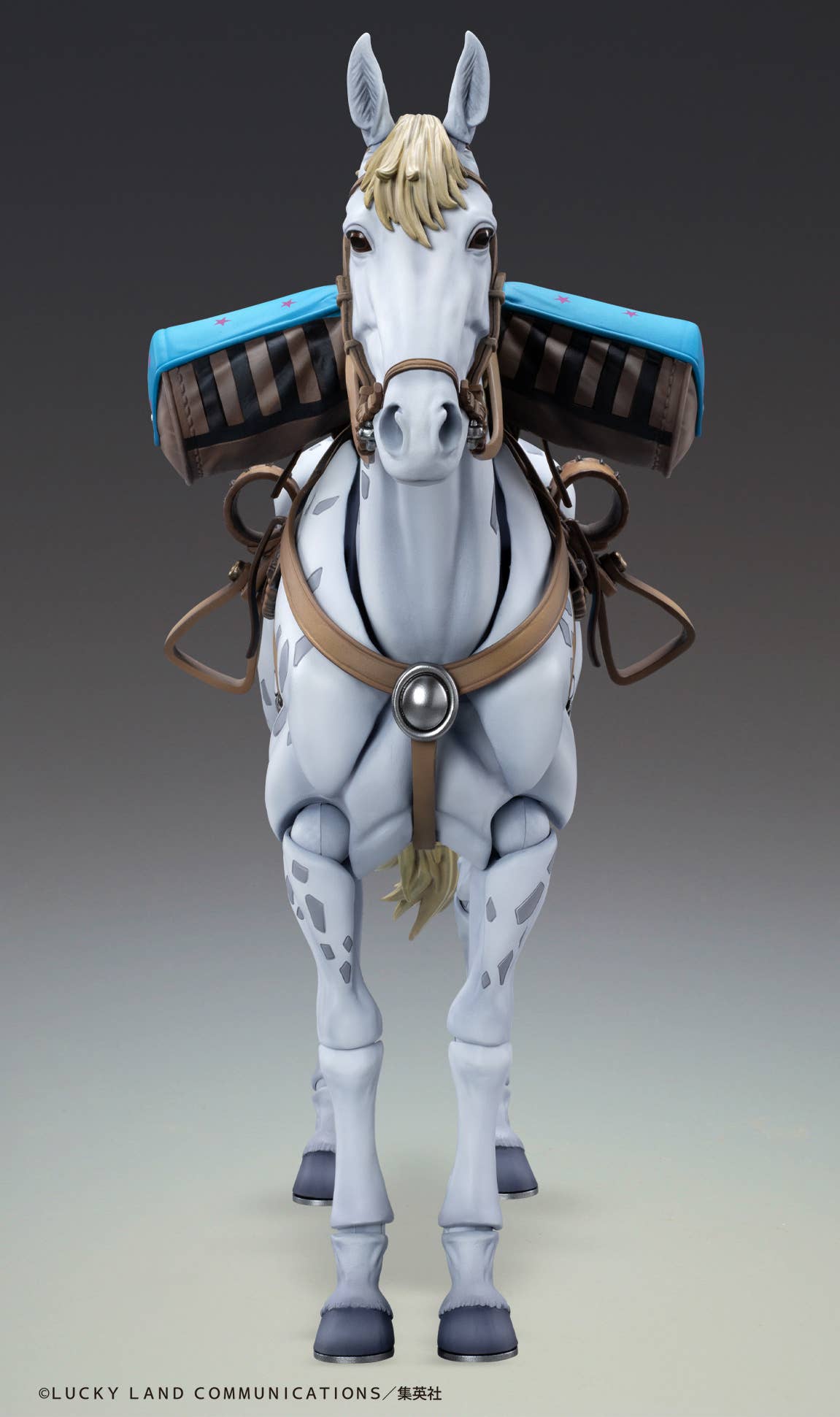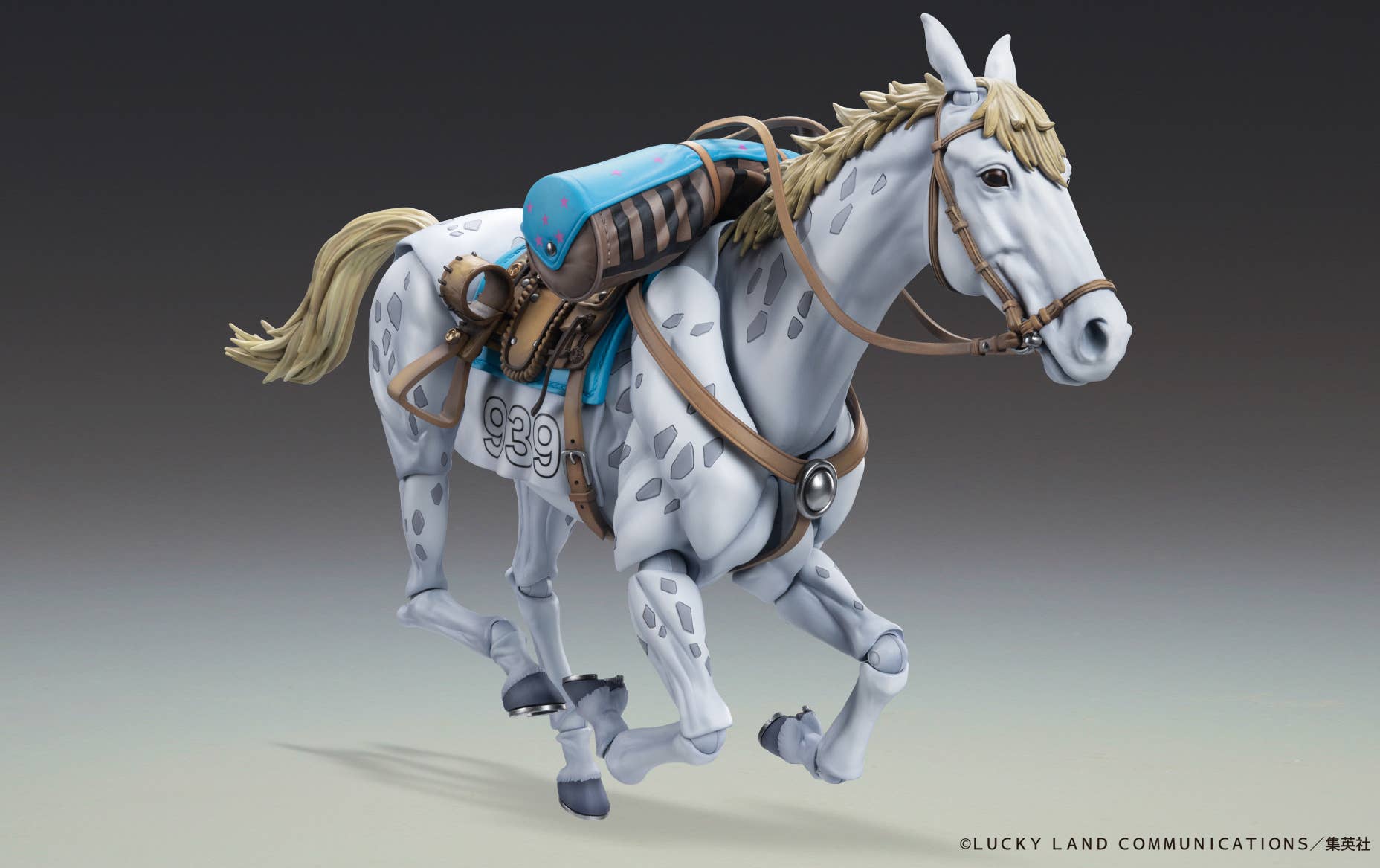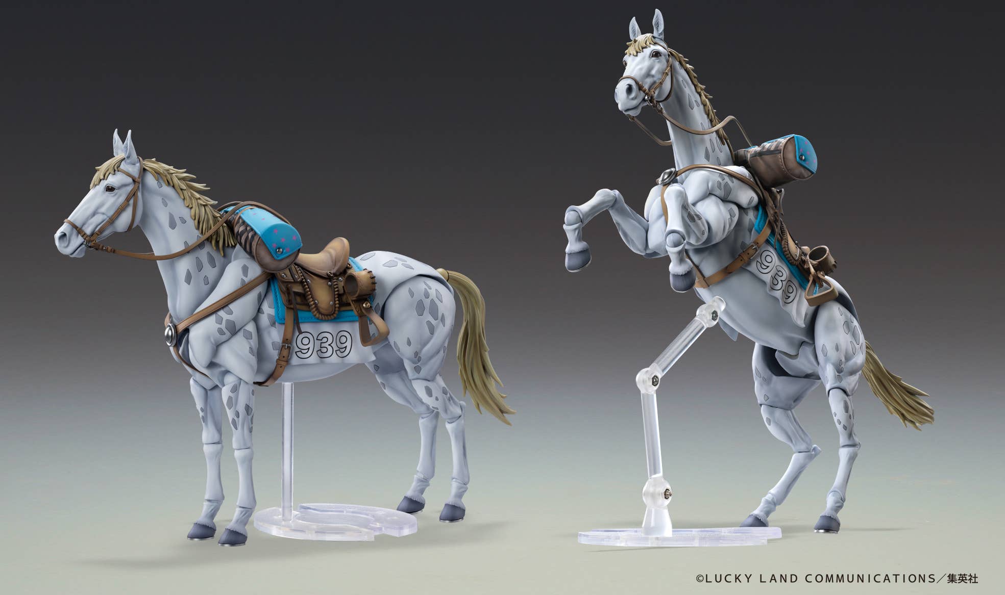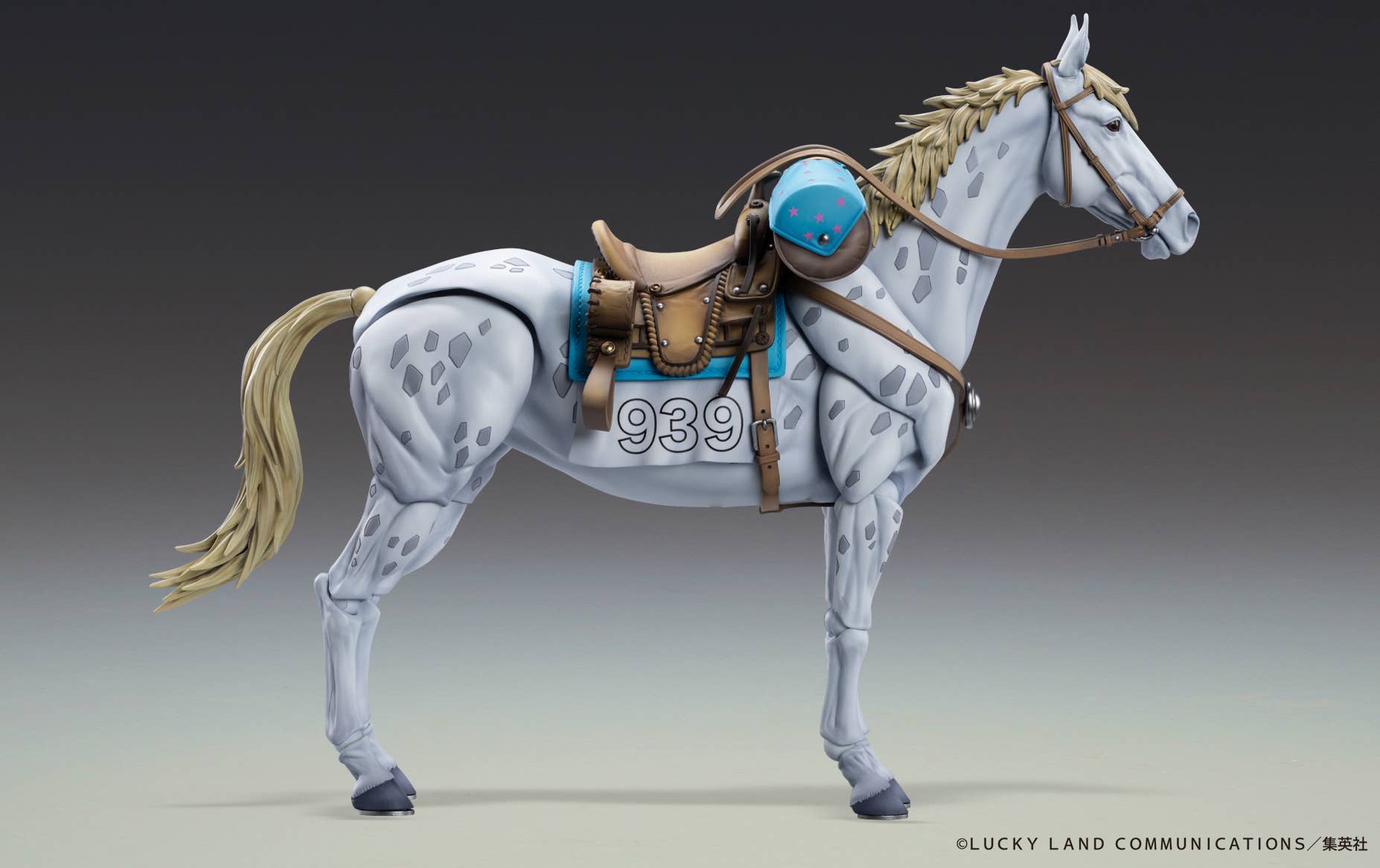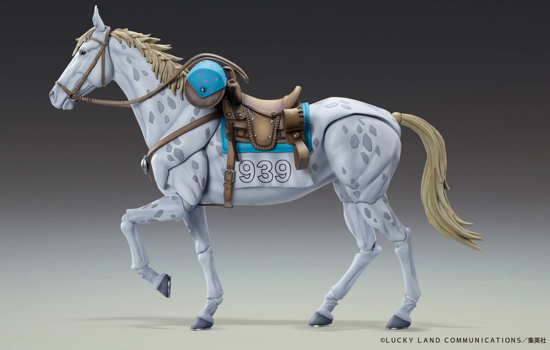 Slow Dancer from "JoJo's Bizarre Adventure Part 7: Steel Ball Run" finally joins the "Super Action Statue" lineup from Medicos! The musculature and skin texture are expressed through meticulous sculpting and painting, accurately reproducing Slow Dancer's spotted pattern and even the smallest details. The legs, tail, and ears are all articulated for dynamic and lively poses, and multiple interchangeable hands for Johnny Joestar are included. Effect parts are also included to recreate the attack where Johnny's Stand, Tusk Act 2, rotates like a drill, as are parts to recreate Johnny riding Slow Dancer and holding the reins! A base for display is included. Order yours today!
