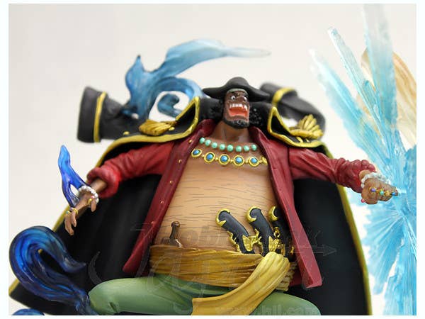 Marshall D Teach from "One Piece" wields his two Devil Fruit powers to devastating effect! The use of translucent plastics highlights his fearsome attacks. He's a game-prize item from Banpresto, and is supported by the blue wave under his right foot. Order him now--and don't forget his friends and foes, linked below!
