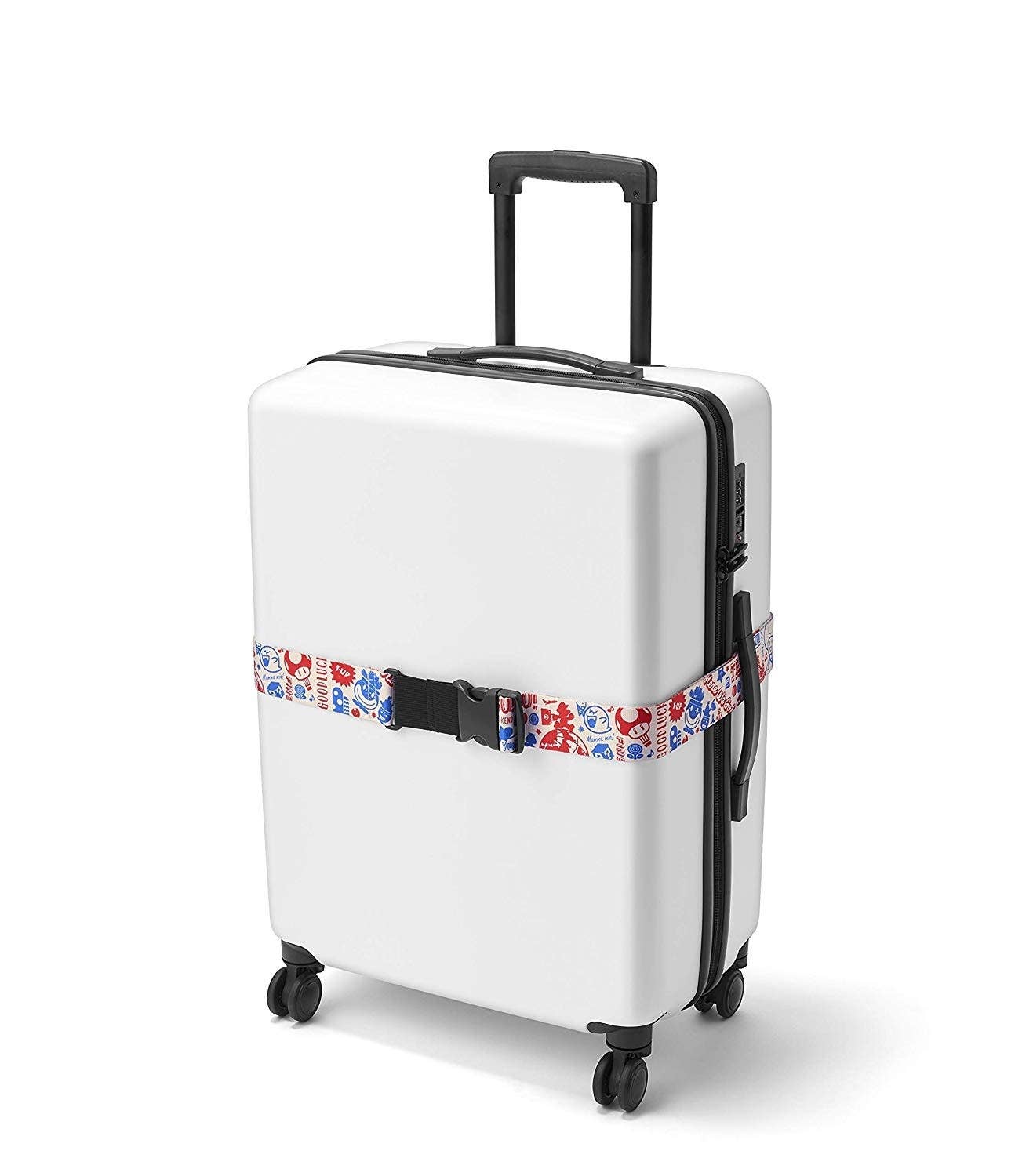 Add some "Super Mario Bros." flare to your luggage with this suitcase belt featuring Mario, Bowser, and many of the beloved characters and items seen in the games!